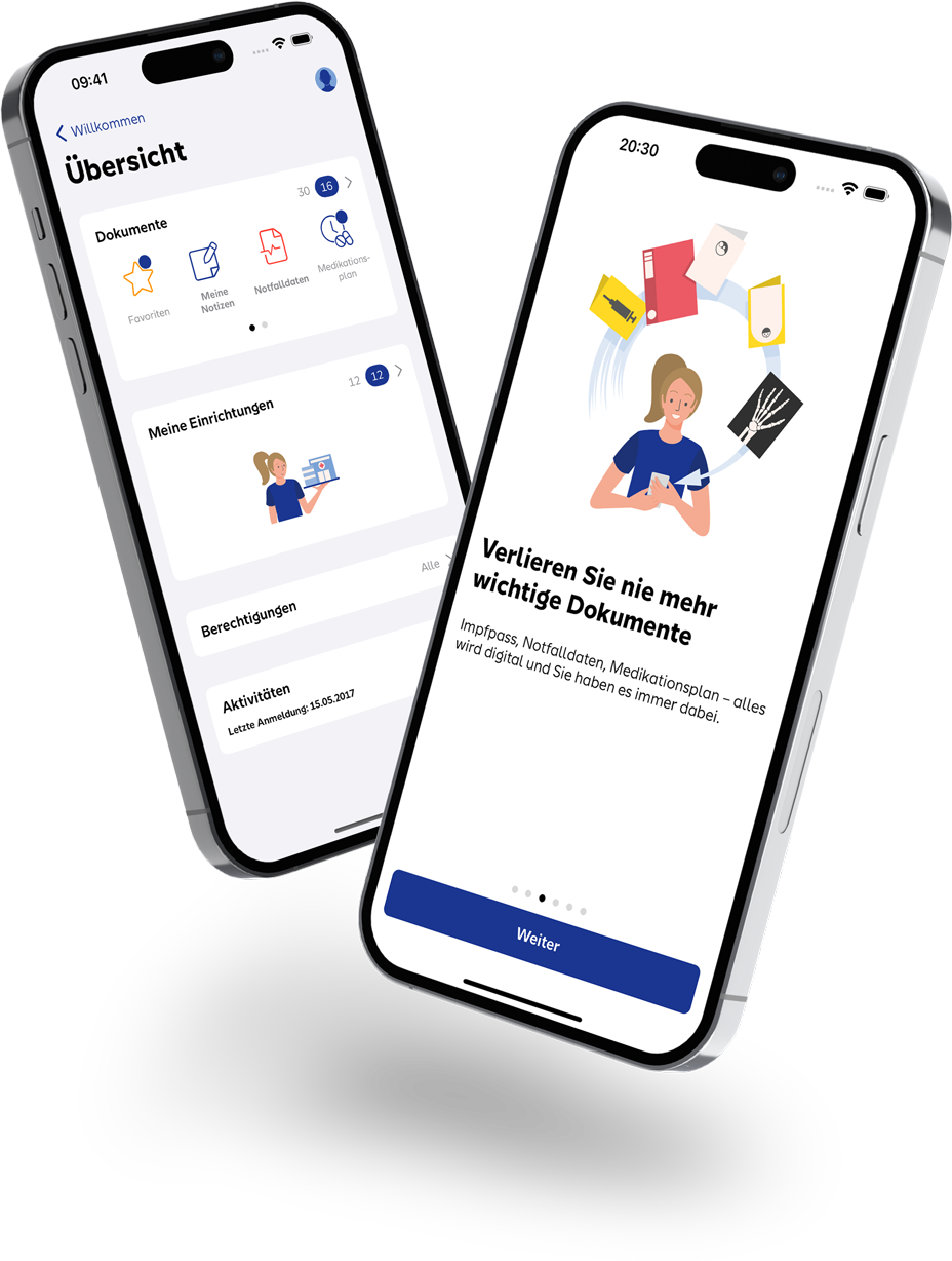 Schneller Zugriff auf Ihre Gesundheitsdaten (auch im Notfall), einfacher Dokumentenaustausch zwischen Ärzten und ein ganzheitlicher Blick auf Ihre gesundheitliche Situation: All das und mehr bietet Ihnen unsere ePA-App.
