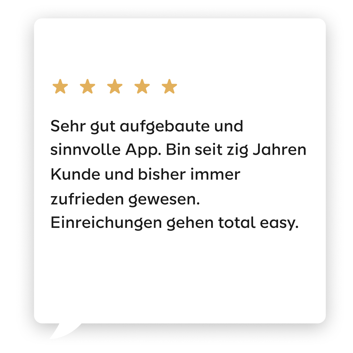 Sie können mit der App direkt Fotos aufnehmen oder PDFs und Bilder von Ihrem Gerät hochladen. Die Qualität der erfassten Dokumente wird überprüft, sodass die Bearbeitung erfolgen kann. Zusätzlich können Sie den Bearbeitungsstand Ihrer Einreichung nachverfolgen und nach Abschluss die zugehörigen Leistungsbelege einsehen.